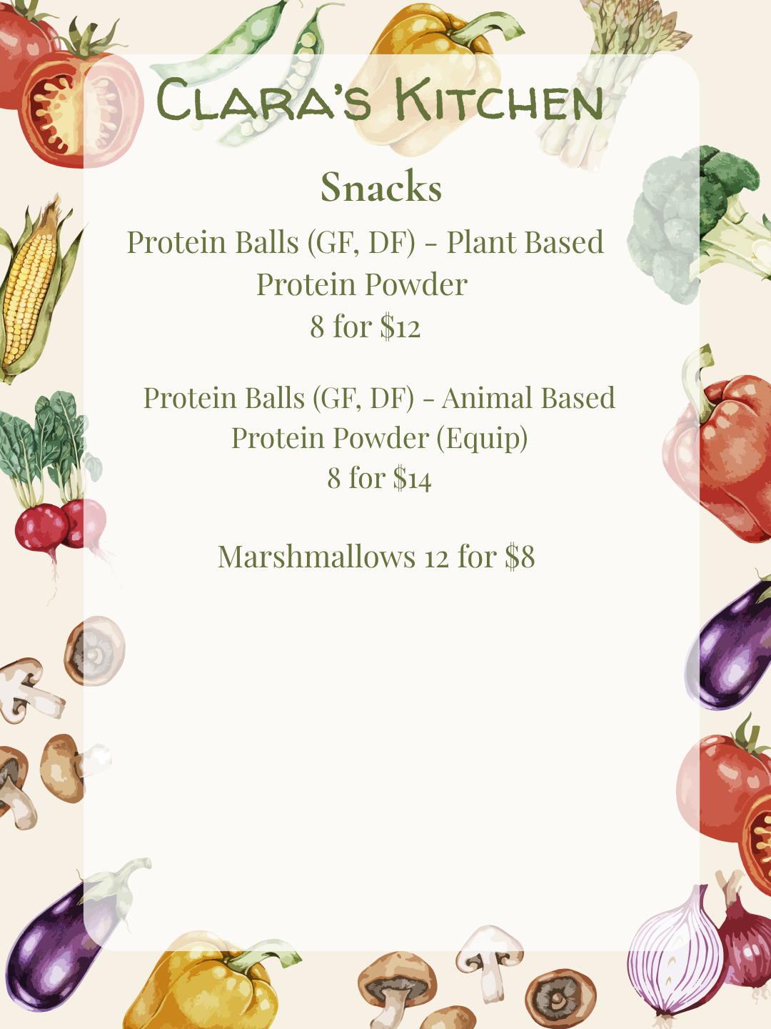 Important Note: Orders are prepared in a home kitchen therefore quantities are limited each week. Late orders may not be accommodated